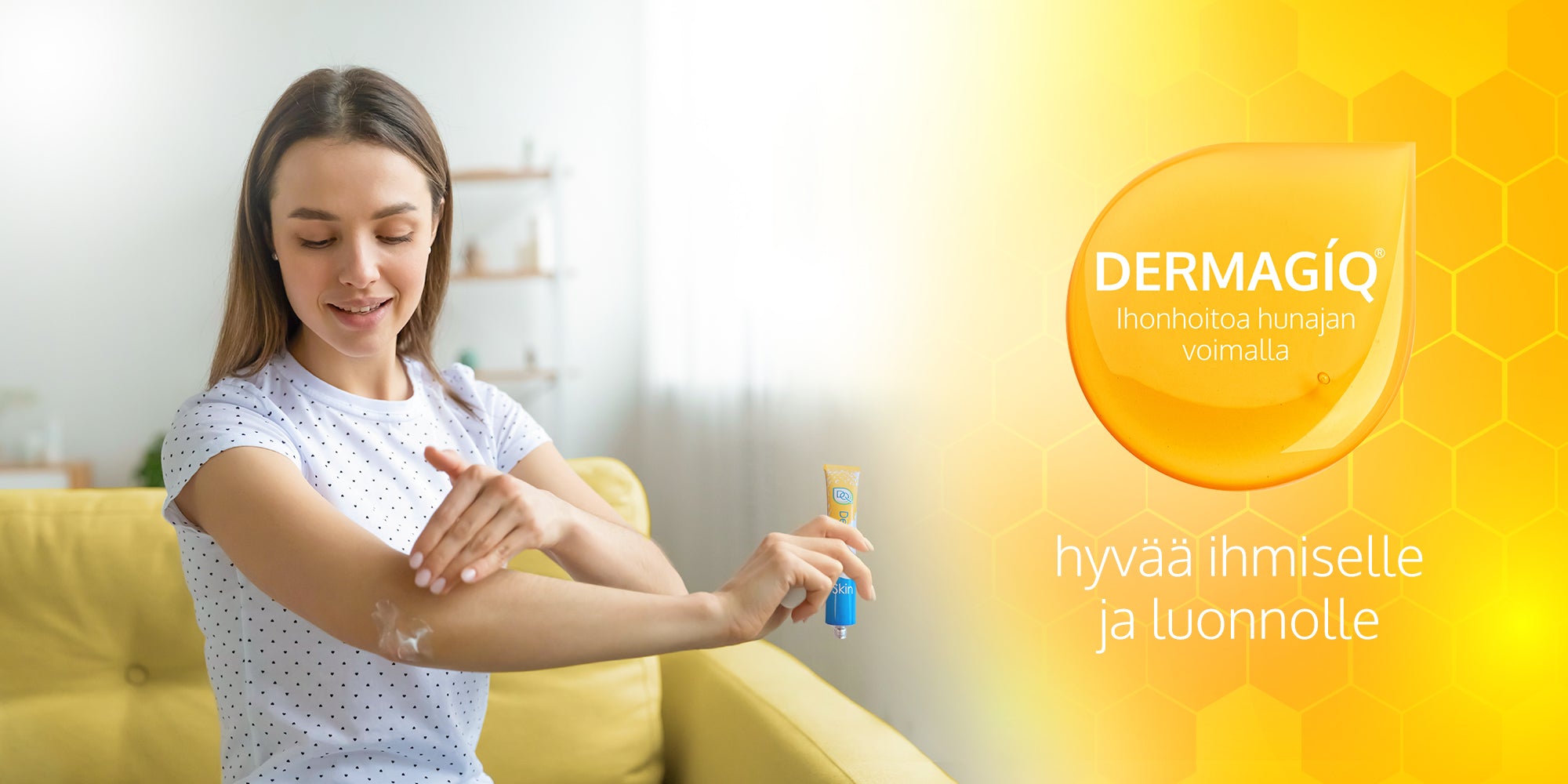 Kärsitkö iho-ongelmista, tai haluatko vain huolehtia ihostasi hyvin? Hunajapohjaiset Dermagiq-tuotteet tukevat ihon luontaista paranemisprosessia. Tuotteet ovat ihoystävällisiä ja turvallisia käyttää.